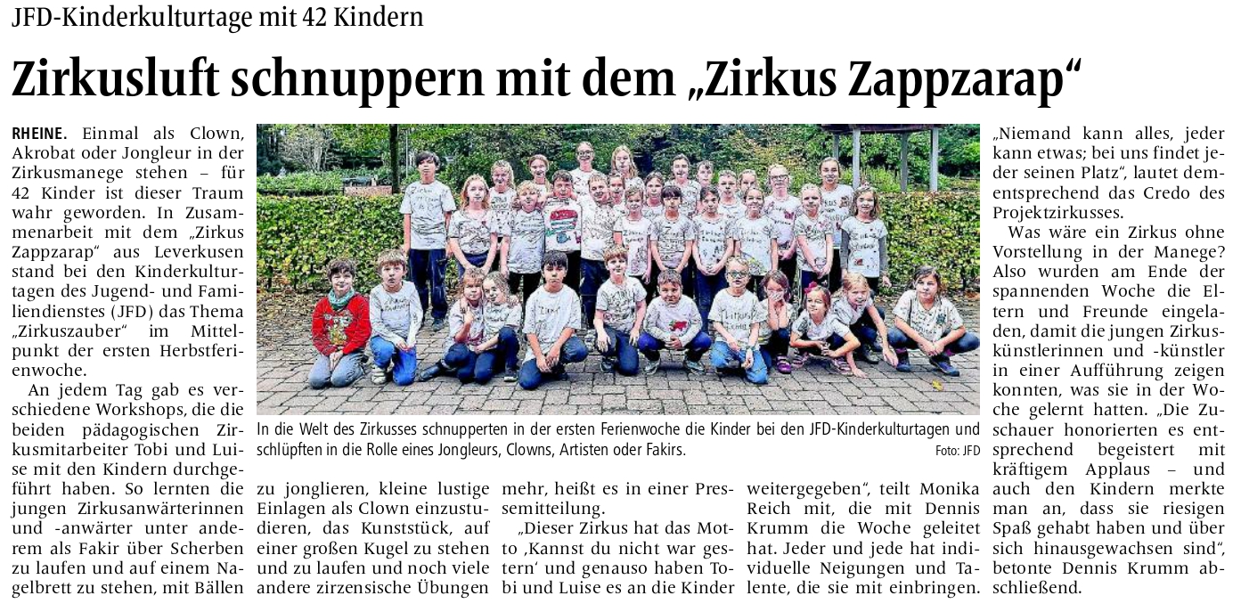 Der Rheiner Report berichtet in seiner Ausgabe vom 21. Oktober über die Kita Hoppetosse als Notinsel-Standort...