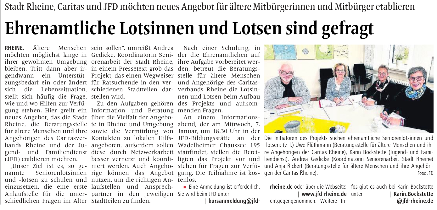 Die MV berichtet in ihrer Ausgabe vom 8. Februar über die Scheckübergabe des jfd-Basarkreises...